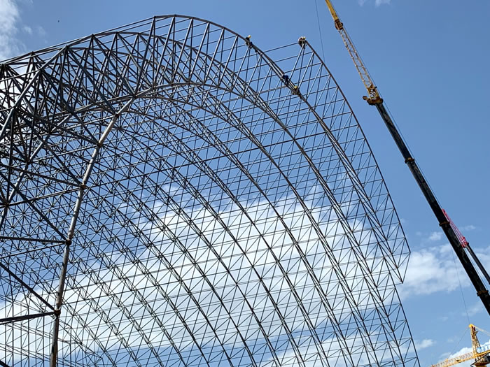 (2)网架加工前应对现场尺寸进行复测,确认无误后方可进行加工、安装;网架制作、运输、安装应遵守《空间网格结构技术规程》JGJ7-2010、《钢网架广汉螺栓球节点》JG/T 10-2009、《钢网架广汉螺栓球节点用高强度螺栓》 GB/T 16939-2016、《广汉钢结构广汉工程广汉施工规范》 GB50755-2012、《广汉钢结构广汉工程施工质量验收标准》 GB50205-2020。