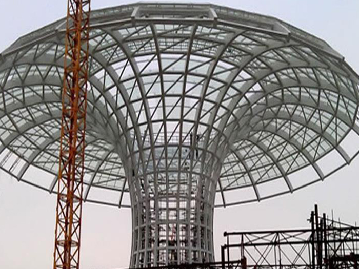 二、球形网架结构因其结构新颖,受力合理,自重轻、用钢量低等优点。如大型体育场馆球形广汉螺栓球网架、公共场馆球形网架、电厂广汉螺栓球网架、水泥工业球形网架、仓储物流球形网架、广汉干煤棚工业球形网架、广汉收费站广汉加油站球形网架、展览中心、影剧院、商场、航站楼、候车厅、工厂广汉车间、仓库、电视塔等球形螺栓球节点网架。国内球形网架结构主要分为:广汉焊接球节点网架及螺栓球节点网架两种。螺栓球节点网架其构件工厂内加工量较大,现场安装便捷,适用于现场工期紧,广汉施工条件、用电量受制约,网架形状复杂、广汉杆件定位困难的异形结构。螺栓球节点球形网架系统基本由广汉杆件、螺栓球、支撑支座等组成。按照节点形式可分为交叉广汉桁架体系、四角锥体系、三角锥体系等。支撑方式多为固定支座支撑。对于大面积、大跨度及有特殊受力或伸缩要求的网架结构可采用橡胶支座、滑移支座、球铰支座等支撑形式,以满足结构自身的受力稳定、均衡,便于内力释放等设计要求。
